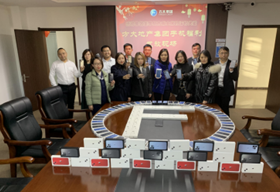 “咱们地产发手机福利,最新款的苹果手机,快去领吧!”12月13日下午,在方大地产集团16楼会议室手机福利发放现场,人声鼎沸,喜庆热烈,沈抚地区地产企业员工代表怀着激动的心情领取本公司的福利手机。